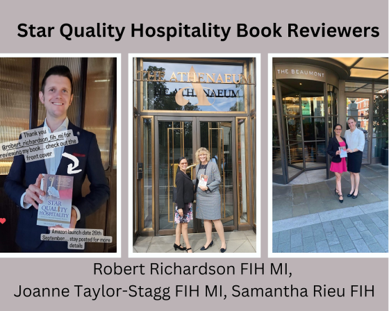 During the writing process the raw manuscript was reviewed by four top hospitality professionals: – Robert Richardson FIH MI, CEO for the Institute of Hospitality; Joanne Taylor-Stagg FIH MI, General Manager of The Athenaeum Hotel and Residences and Samantha Rieu FIH, Hotel Manager at The Beaumont. You can read their reviews on the front and back book covers. David Weston, Chairman of the UK Bed and Breakfast Association also wrote the Foreword for the book.