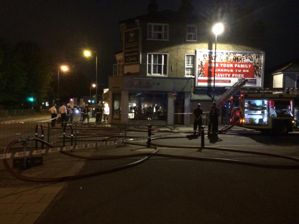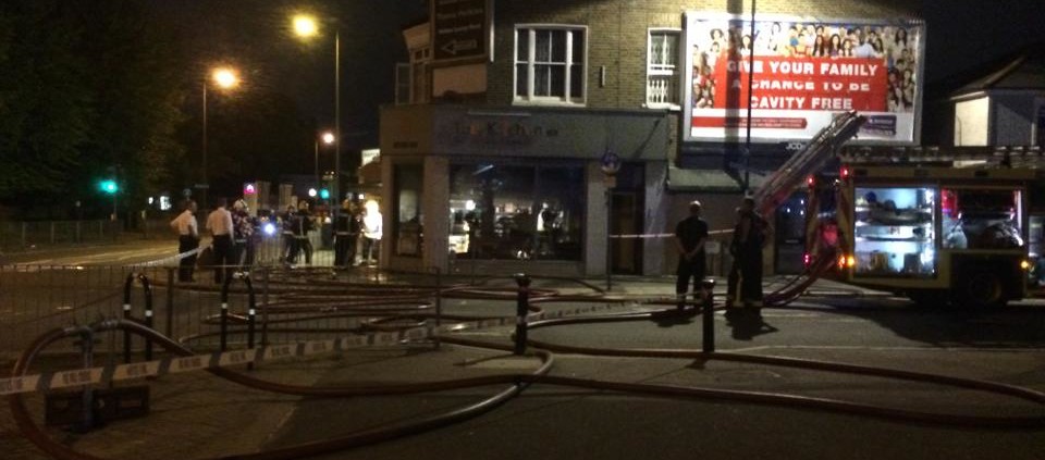 The Kitchen SE12 had only just celebrated it’s 2nd birthday having opened on 26th July 2012. It has been doing a roaring trade and is a hit with the locals. So when I approached it last night to be greeted with fire engines and a team of fire men I was gutted to see that this fantastic cafe has been badly damaged by what is thought to have been an electrical fault. I spoke to the owners last night who were outside and thankfully nobody was in the building at the time of the fire.
